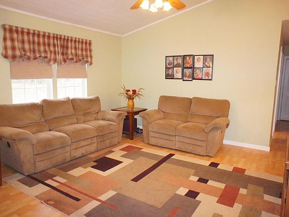 Situated on a private 1.43 acre property, this very nice 4 bedr 3 bth ranch offers over 1900 sq ft of living space. Great open floor plan. Lovely kit w/ maple cabinets & center island. Spacious family rm, vaulted ceilings & formal liv & din rms. Master suite features WIC, lux mas bth w/ whirlpool tub. Enjoy nature & views from the covered front porch, rear deck & patio. Built-in garage.