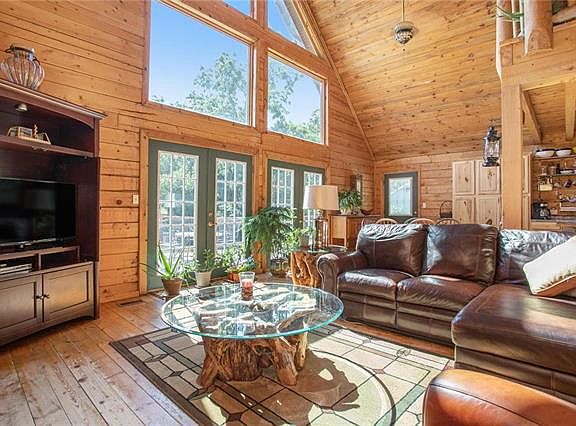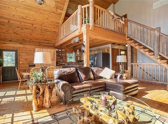 Gorgeous log cabin feel w/country living on .66 acres. Great room soaks in the natural light w/2 story windows & its soaring ceilings & features a handsome stone fireplace. Country kitchen w/ large center island, pantry & updated appliances are a chefs dream. Dining w/access to deck & wrap around porch w/ great view, ideal for morning coffee or entertaining guests. Master w/ cathedral ceilings ,access to deck & private bath is a true retreat. Loft provides a 2nd space to get away. 21 Solar panels seal the deal.