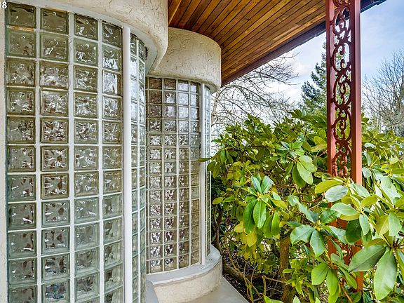 Seeking serenity in the city? Lovely property is blanketed by forested conservation zone on 2 sides;at terminus of dead end street.Extraordinary home w/original custom architectural details:glass brick exterior walls;frameless 3-pane corner window;Mansard roof skirt of tile+copper.Grand cove+tray ceilings.Spacious living rm;huge island kitchen.Den w/fireplce & wetbar.Unusual for area:double garage w/expansive driveway for guests or RV.