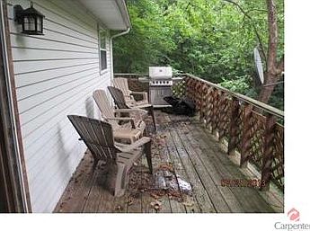 Home offers lots of living space with a full finished basement. There is a second kitchen area in the lower level and full bath on both levels. Walk out from Living room to an upper level deck overlooking small creek and waterfall. Home offers newer metal roof installed in 2010. Very peaceful!!