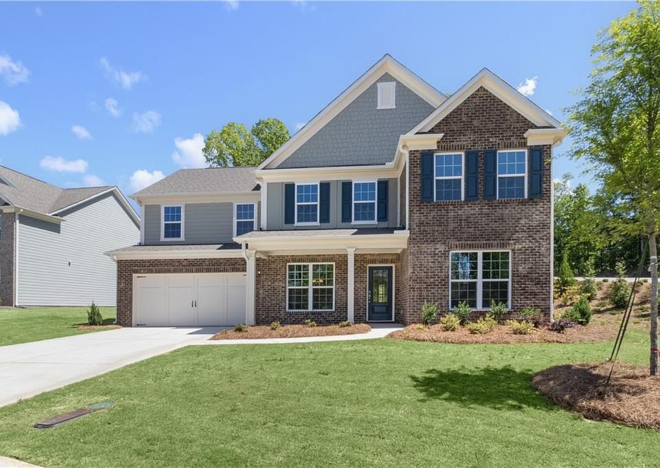 Pinebrook is the only new construction community in the Mill Creek School District with the amenity package that we offer (clubhouse, tennis courts, pool, and playground). Located only 5 minutes from I-85 exit 126, this community is a quiet escape from the city while remaining close to points of interest. This move-in ready home features a guest bedroom on the main level complete with a full bath. There is a half bath for the first level next to the library and across from the dining room. The white kitchen overlooks the nice-sized gathering room, allowing you and your family to spend quality time together. The upstairs has a large, centralized loft that each of the 4 upstairs bedrooms branch from. Laundry room is conveniently located upstairs on the same level as many of the bedrooms. The owner's suite has upgraded tub and shower + his & her walk-in closets. Move in this beautiful new home in 30-days or less from now!!