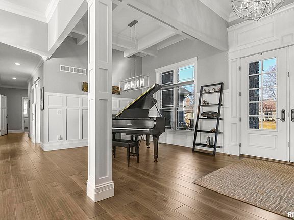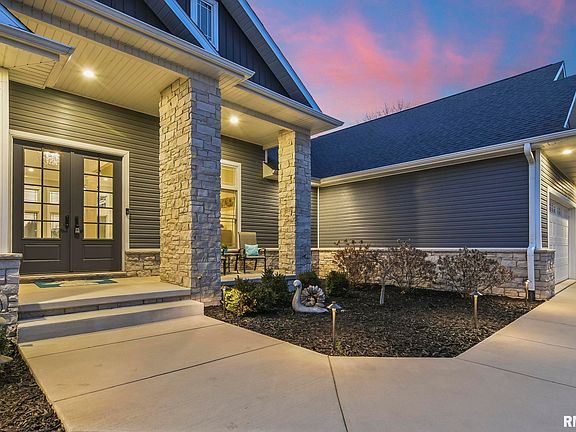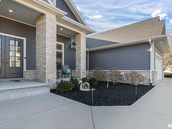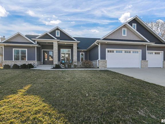 MUST SEE! Exquisite 4 years new, 5 bedroom ranch home with views of the 16th fairway and pond of Panther Creek Golf Course. Open, split floor plan with popular farmhouse look. Living room boasts hardwood flooring, gas fireplace, floor-to-ceiling Pella windows. Kitchen is a chef’s dream! Custom white soft close cabinetry with rollouts, quartz countertops, farmhouse sink, huge island, and stainless steel appliances. Additional butler’s pantry offers additional cabinets, shelving, and sink. Spacious primary bedroom has two walk-in closets, and stunning en-suite with dual sinks, tile shower, and soaker tub. Attached laundry room provides plenty of storage and sink. Two additional main floor bedrooms each have private bathrooms. Full, finished basement has family room with daylight windows, two additional bedrooms, two full bathrooms, and tons of storage. Enjoy spring and summer evenings relaxing on screened porch with custom lighting. Other items to brag about: irrigation system in front yard, custom electronic blinds, sump pump with water back up system. Oversized three car garage. Chatham Schools. Showings 3/9-3/12 and offers in by 12pm on 3/13.