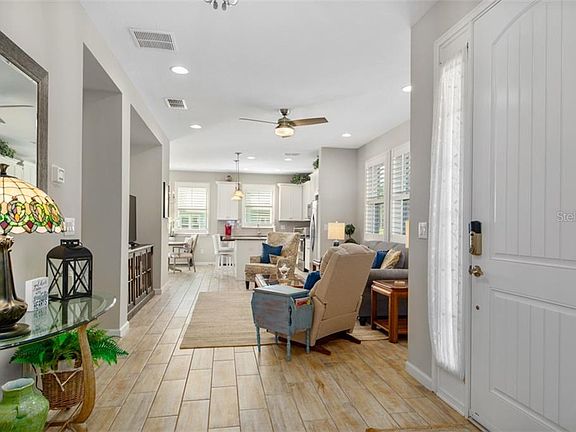 - Interior Features: Ceiling Fans(s), Eating Space In Kitchen, High Ceiling(s), Master Bedroom Downstairs, Open Floorplan, Split Bedroom, Walk-In Closet(s), Solid Wood Cabinets, Thermostat, Kitchen/Family Room Combo, Solid Surface Counters, Window Treatments, In Wall Pest System