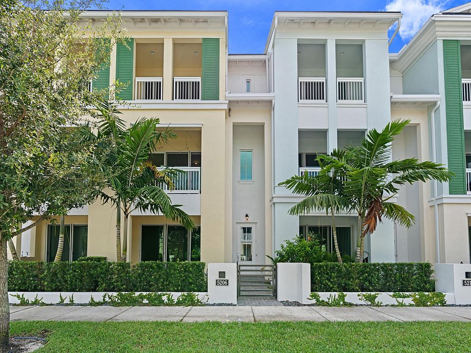 Welcome to 5206 Beckman Terrace in Alton, Palm Beach Gardens. This 2022-built three-story townhome, Kolter's premier model, offers a versatile ground floor space, which can serve as a fourth bedroom, den or office complete with a full bath and walk-in closet. The first two floors feature exquisite wood-like porcelain tile.Ascending to the second floor, an expansive open layout seamlessly combines the kitchen, dining, and living areas, leading to a balcony with charming street views. The kitchen boasts white quartz countertops, a five-burner gas stove, and ample cabinet space.On the third floor, you'll find a spacious master bedroom with a private balcony, ensuite bath, double sink, separate tub and shower, and a roomy walk-in closet. Alton provides a wealth of amenities including a resort-style pool, pickleball and tennis courts, basketball court, dog park, playgrounds, and a modern fitness center. Conveniently, you'll be within walking distance to restaurants, Starbucks, Home Depot, and a Publix. The community is golf cart-friendly. Just one mile from I-95, seven miles to the beach, and 20 minutes to Palm Beach International, this location is unbeatable.