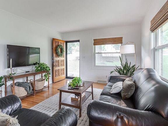 This timeless brick ranch brings the outdoors inside, you will love all the natural window lighting. Open floor plan from living to kitchen, with beautifully refinished hardwood floors that give the house a touch of elegance and class. The kitchen is updated and comes fully equipped with microwave, range, dishwasher, refrigerator, it also features tile floor, newer cabinets, pantry and nook area for dining. You will notice the little things in this home that make a big difference such as the board & batten in hall, bamboo window coverings, new interior poplar doors with updated hardware, all new wood trim (windows, baseboards and doors on main level), new vent covers just to name a few. Following the hardwood floors down the hall is a completely gutted down to the studs amazing bathroom: curb-less shower (tiled floor to ceiling) , floating vanity, new plumbing, toilet, light fixtures, ceiling, to sum it up its a bathroom with the works. Two spare bedrooms on main level both amble in size plus primary bedroom in back all featuring the refinished hardwood flooring. While the upstairs is nice the finished basement has many surprises such as a large family room with space that can be divided into two areas if you need for table and chairs as well as TV lounge area. Off the lounge area is a separate room (no egress or window) but could be used for office/exercise/play room. Full bath down stairs with tub/shower combo, laundry room with utility sink, unfinished storage space as well as a bomb shelter. Stairs in basement off laundry lead to the attached garage on main level. Off the back of the home is semicircular sunroom with stone ledge leading to the backyard. Other amenities of this home include: front and back patio, storage shed, 100 amp service, freshly painted main level walls, new 6 inch gutters 2022, HVAC new in 2004, dimensional roof new in 2007, water heater in 2008, 1 car garage, 1 year home warranty included and immediate possession. All situated on .38 acre lot in a neighborhood that will charm you with its kindness.