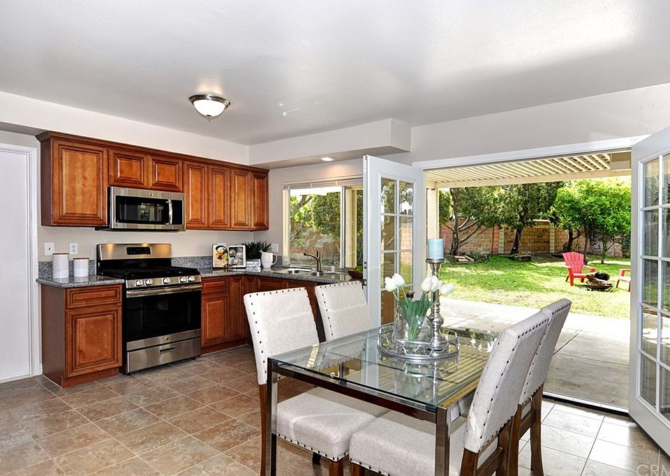 Welcome to 5206 E Avenida Palmar. This charming Single Family Home is located in the highly desired City of Orange. As you pull up to the home you are greeted with welcoming curb appeal and an extra long 2-car driveway. As you enter through the home you are presented with a feeling of openness with the highly vaulted ceilings in the Living Room. This 4 bedroom and 2 bath property is one you do not want to miss! The upgrades to this home are plentiful, featuring a recently renovated kitchen with gorgeous espresso wood cabinets and exquisite granite countertops. Along with the kitchen upgrades are the bathroom upgrades that are a must see. The bathrooms are equipped with newer bath vanities and gorgeous granite countertops. Throughout the entire first floor of the home features recently installed laminate flooring and carpet in the bedrooms downstairs. The spacious family sized kitchen provides for an inviting feel, as it is easily accessible from other rooms. As you enter the second floor, the upgrades continue. The two upstairs bedrooms are enormous. Features sliding closet doors and lots of storage space! Brand new installation of carpet in each bedroom. Not to forget the upgraded bathroom between the two bedrooms! The 2 car garage is easily accessed from the kitchen. As you walk into the backyard, your imagination will run wild with the countless possibilities this large space will provide. This home is a unique opportunity you will not want to pass up. Welcome home!