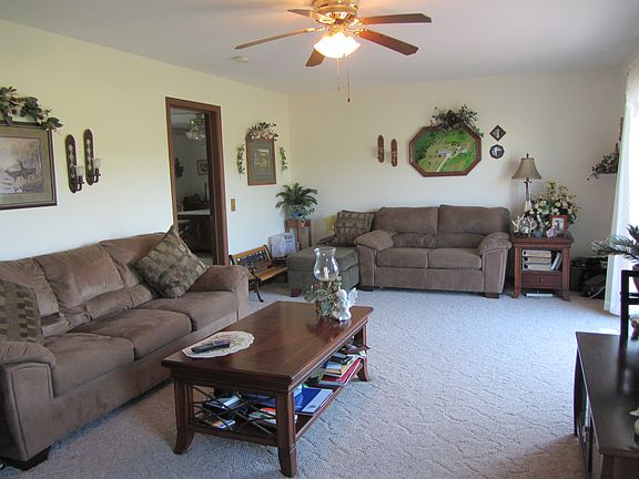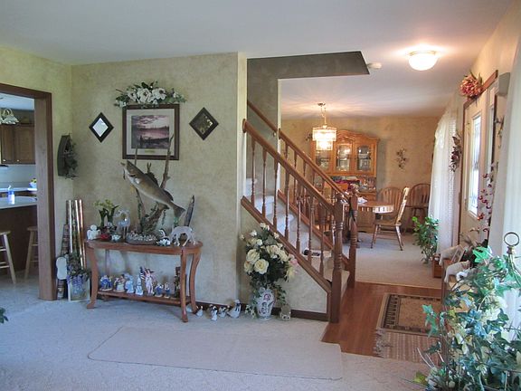 Cape Cod on over 11.5 acres set back 300'' from the road on your own little private getaway with nature surrounding. In addition to the 2 car att. garage there is a 28x28 detached garage that is insulated and heated, wired for 220 and another 18x20 garage w/ carport too! Three bedrooms, 2.5 baths, main floor laundry, island kitchen, formal dining, living and family rooms, full basement that could be finished, and master suite on main level with 2 walk-in closets and garden tub. Andersen windows. Impressive covered porch. Family room has slider to deck. A secluded location with wildlife all around and established fruit trees too!