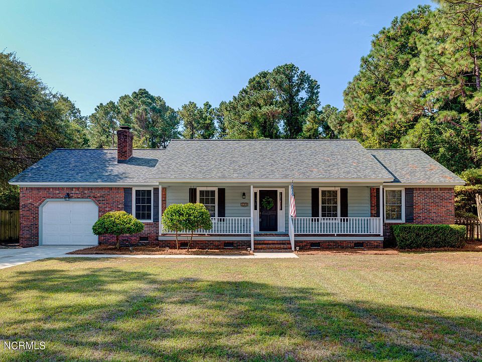 Welcome Home! This beautifully updated ranch-style home is situated on a quiet cul-de-sac off Masonboro Loop Rd, offering a serene and private living experience. As you approach the house, you'll be welcomed by a charming covered front porch. Upon entering through the front door, you'll enter a bright and inviting living room that seamlessly flows into the dining room, creating an open and spacious atmosphere. The heart of the home is the chef's kitchen, which features numerous upgrades, including granite countertops, stainless steel appliances, double ovens, a gas cooktop, a convenient pot filler, and custom cabinets. This well-appointed kitchen overlooks the lush and tranquil backyard, providing a picturesque view while you cook and dine. Adjacent to the kitchen, you'll find a conveniently located laundry room and a private office with direct access to the backyard. Additionally, a staircase leads to a bonus room over the garage, offering flexibility for various uses such as a home office, gym, or entertainment area. Down the hall from the main living area, you'll discover a full bathroom that serves two generously sized bedrooms, creating space for relaxation. Across the hallway is the primary bedroom, complete with an ensuite bathroom with a stunning marble vanity top and a fully tiled shower. One of the standout features of this property is the backyard oasis. It includes an expansive deck, perfect for outdoor dining and entertaining, which overlooks an in-ground pool with a hot tub. The well-maintained landscaping and the pool area create a private haven for relaxation and recreation. A storage shed is also available in the backyard, providing additional space for storing outdoor equipment and tools.