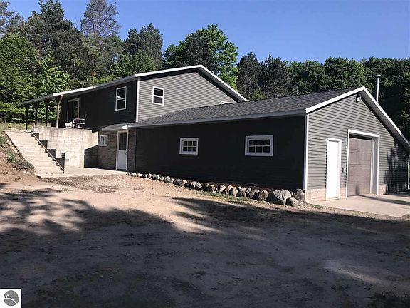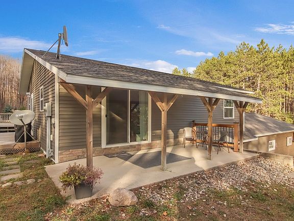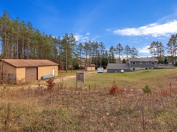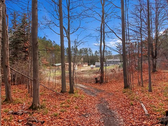 Nestled in the woods you will find this 3 bedroom, 2 bath ranch home beautifully situated on 9.6 wooded acres. Recent updates include seamless gutters, solid maple doors, new heated bathroom fan, freshly painted and updated lower level bathroom with new shower, vanity, toilet and laminate flooring. 2017 updates include, newer siding, roof, all new upstairs windows, furnace, hot water heater, slider door, newer appliances and so much more. The main floor features hardwood floors, kitchen with under cabinet lighting, living room with slider to the back patio and 2 spacious bedrooms and a full bath. The walkout lower level includes 2 bedrooms, one of which is non conforming, a family room and full bath. Heated attached 32x24 garage in addition to a 25x45 pole barn with cement floor, electricity and two overhead doors. Back deck, dog kennel, garden area with garden boxes, carport and new well pump.