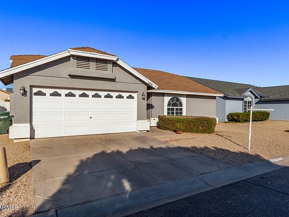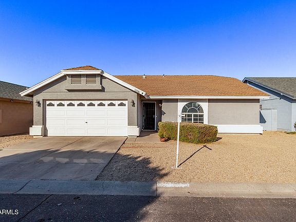 This charming home in Glendale, AZ, offers a comfortable and well-thought-out design with vaulted ceilings, a spacious great room, and an updated kitchen and flooring from 2010. The master and an additional bedroom feature walk-in closets, while the kitchen includes a disposal, dishwasher, and pantry. With indoor washer/dryer hookups, formal and casual dining areas, a two-car garage, and extra slab parking, this home is both practical and inviting. The outdoor space boasts a desert front yard with a watering system, a covered patio, and backyard watering for easy maintenance. Conveniently located near bus stops and just 6 miles (approximately a 10-minute drive) from State Farm Stadium, this property is perfect for anyone seeking a cozy and accessible lifestyle.