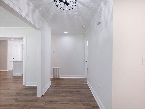 Welcome to this gorgeous corner lot home situated on over an acre with no HOA, just minutes from Lake Lanier. This beautifully updated, all one-level ranch is truly move-in ready. Step inside to find brand-new hardwood LVP flooring throughout and a fresh coat of interior paint. The renovated kitchen is a showstopper, featuring an oversized island with seating for four, stunning quartz countertops, and a backsplash that extends to the ceiling for that “wow” factor. All new stainless steel appliances—including the refrigerator—are included. The open-concept floorplan offers a warm and inviting family room with a wood-burning fireplace, a dedicated dining area, and a sunroom that can easily be used as a playroom, office, or flex space. The home features three spacious bedrooms, two full bathrooms, and generous closet space throughout. A large laundry room, thoughtfully placed away from the bedrooms, makes it convenient to run loads at night without disturbing anyone’s rest. Step outside to enjoy the privacy of your expansive backyard, complete with a deck perfect for grilling, entertaining, or simply relaxing. This home is perfect for every stage of life—whether you’re starting out, downsizing, or anything in between. Private, stylish, and move-in ready, all just minutes from the lake.