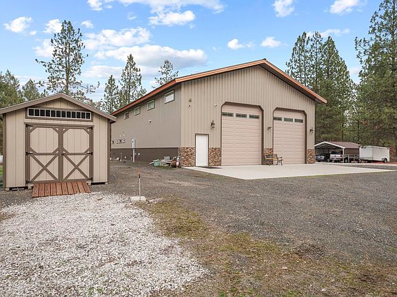 "Home sweet home". Custom home located on 5.7 acres with incredible views of your Spokane River frontage. The spacious great room features a Chefs kitchen with soaring vaulted ceilings, custom cabinetry, stunning Brazilian granite, top of the line stainless steel appliances & oversized walk-in pantry. Large kitchen island features prep- sink & eating bar. Adjacent to the great room you find a cozy media room with sound system, convenient half bath & pull down staircase to storage loft. Primary suite boasts a luxurious bathroom with oversized jetted soaking tub, shower & double sinks. Huge walk-in closet from bedroom & bathroom. FULLY equipped shop w/two 14ft overhead doors, 2 lifts, air compressor lines, 50,000 BTU pellet stove (w/wall control) & much more. Grounds feature irrigated & fenced garden, 9 tree orchard, 2 RV hook-ups/dumps, fire pit, 4 extra covered parking area. 18KW stand by generator with auto transfer switch. Starlink installed! Too many more amazing details to list.