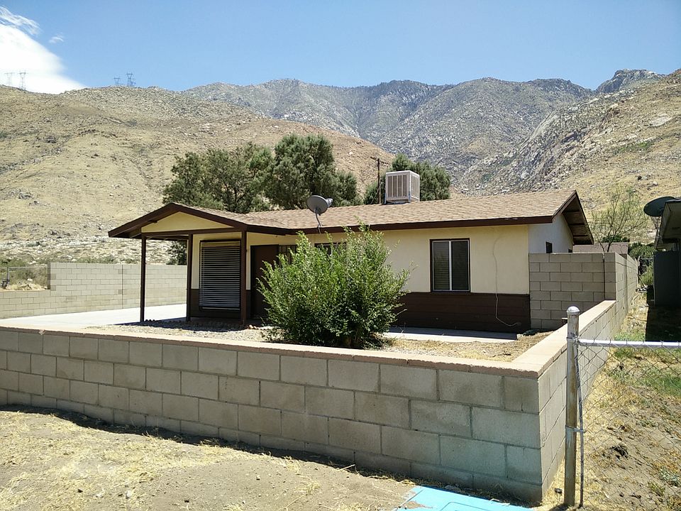 Single family home, perfect for a family, interior painted and new carpet, ready to move in. Kitchen with large nook. Large pantry with lots of cabinet space and a broom closet, including hookups. Large living room with lots of light leads to covered front porch. First bedroom is small room perfect for nursery or office, second bedroom with ample space and closet, third bedroom with closet and has it's own french doors leading to backyard and private patio area. Located at the base of Mt San Jacinto, it has beautiful mountain views in a quiet neighborhood. Agents with buyers are welcome to submit an offer for a commission of 2.5% of the contract amount.