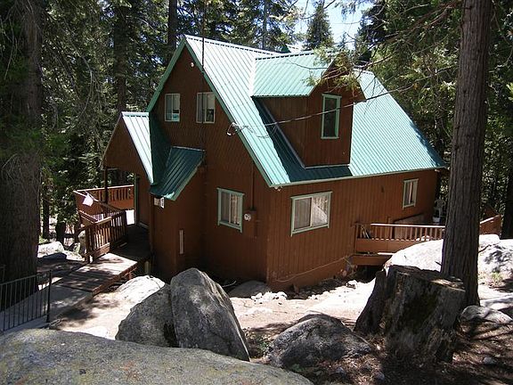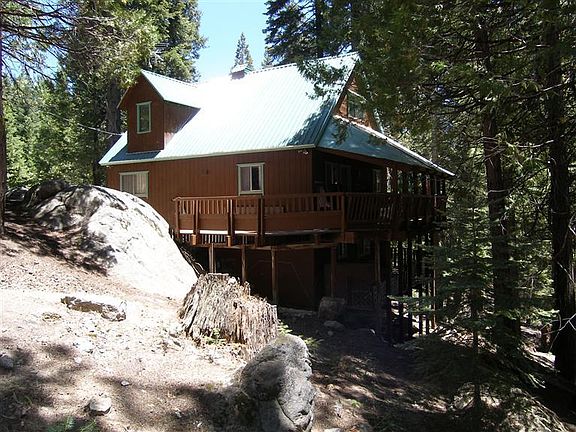 This would be a great location for the family that would like to be in a private small housing tract about 20 min. out of Shaver Lake on Dinkey Creek Rd. Cabin has nice setting with large boulders on a 3/4 acre lot. New green metal roof that will last a lot of winters. Open floor plan with gas fireplace stove. Main floor bedroom and 3/4 bathroom. Pantry off the kitchen that has wood cabinets and lots a counter tops. Upstairs has two large bedrooms and full size bathroom. There is also an extra room that has been added with a half bathroom. It has its own enterance with a wood deck. The natural man cave or the extra room for the guests. The cabin is ready for new owners to put their finishing touches on. Exchequer Heights has snow removal and is open in the winter. Great spot to enjoy the mountains just short dive up the road to Dinkey Creek. This would be one to check out if this all sounds good to you.