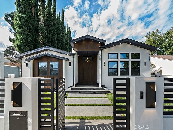 Introducing this newly developed masterpiece situated on a quiet tree lined street in prime Valley Village. This amazing estate offers over 7,000 SF lot, main house has 4 bedrooms and 5 bathrooms and a detached ADU in the back with it's own address and access of approx. 400 SF with 1 bedroom and 1 bathroom. Enter into a grand living room with soaring double height ceilings. The spacious formal dining room seamlessly connects the living room with the family room, where you will find an oversized sliding glass door that opens to allow for indoor/outdoor living. A culinary enthusiast's dream, the gourmet kitchen comes equipped with luxury appliances massive center island with seating. Boasting vaulted ceilings and a cozy fireplace, the luxurious primary suite consists of a walk-in closet and lavish bathroom with a soaking tub, large shower and double vanity. Three additional bedrooms and four bathrooms all on one floor. Top-notch amenities include a laundry room, security system, high ceilings and smart home features. The guest house can be utilized for additional income, as a guest suite or separate living space for family, the possibilities are endless! It features a fully equipped kitchen with a dining area, living room and laundry closet. Surrounded by privacy hedges, the expansive backyard retreat was designed with entertaining in mind. Take a refreshing dip in the sparkling pool/spa or relax on the grass. There’s also an outdoor kitchenette and chillout area.