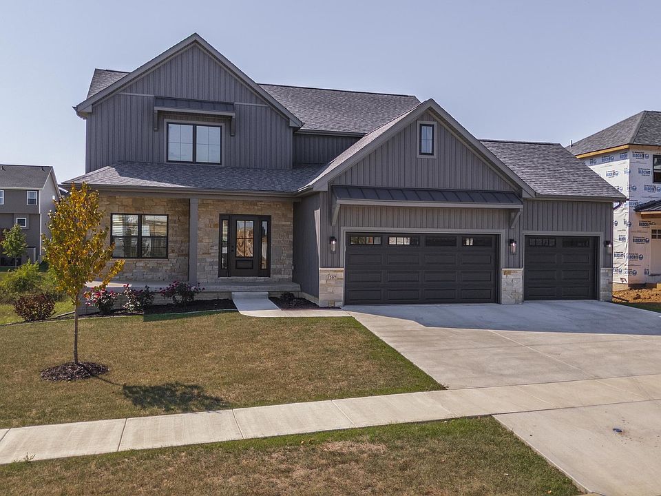 Stunning 1.5-Story Home with Main Floor Primary Suite - Less Than 1 Year Old and Move-In Ready! Why wait to build? This immaculate, upgraded home offers the best of modern living with high-end finishes and thoughtful design throughout. Located in the desirable Unit 5 School District and just minutes from State Farm and Rivian, this home truly has it all.Step into a light-filled, open-concept main level featuring a dramatic two-story entry, custom floor-to-ceiling fireplace millwork, abundance of windows, and a spacious eat-in chef's kitchen. The kitchen boasts quartz countertops, a large island, stylish tile backsplash, stainless steel appliances, a walk-in pantry, and generous dining space. The luxurious main-floor primary suite is a true retreat with custom feature wall, spa-like ensuite bath with dual vanities, freestanding soaking tub, tiled walk-in shower, and a large walk-in closet. Also on the main level: a convenient laundry room and a drop zone for everyday organization. Upstairs, you'll find a versatile loft area, three generously sized bedrooms, and a full bath with double sinks and a private shower area-perfect for guests or a growing household. The finished daylight basement offers a spacious family/rec room, an additional bedroom and full bath-ideal for entertaining, guests, or multigenerational living. Outdoor living is just as impressive with professional landscaping, a fully sodded yard, oversized 16x28 patio, and stained deck-perfect for gatherings and relaxation. Additional worthy upgrades include: custom window treatments throughout, Honeywell smart programmable thermostat, sump pump with jet backup, radon mitigation, and more. This home offers all the benefits of new construction-without the wait-and with thoughtful upgrades already completed. Don't miss your chance to own this truly move-in ready home. Schedule your showing today!