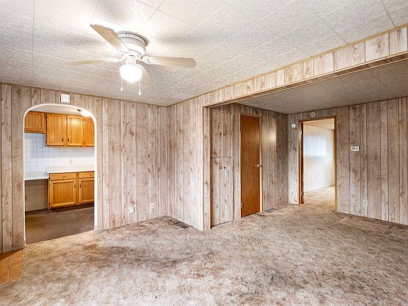 Paint and Carpet will bring you some quick equity. Main floor has Kitchen, laundry area, living room and dining. Full bath and oversized bedroom. Downstairs has a non egress bedroom plus a "toilet room ", separate shower and deep sink. Forced Air Gas heat and Central AC. Almost new tankless hot water tank. Very large fenced back yard with alley access. This property has a tandem pull thru double garage with a small workshop ( 516 sq. ft. ) Past owner had a small engine repair shop. Tandum garage opes on both ends so you can pull through from the alley through the garage and out to Maple St. This is an estate sale and is sold "as-is".