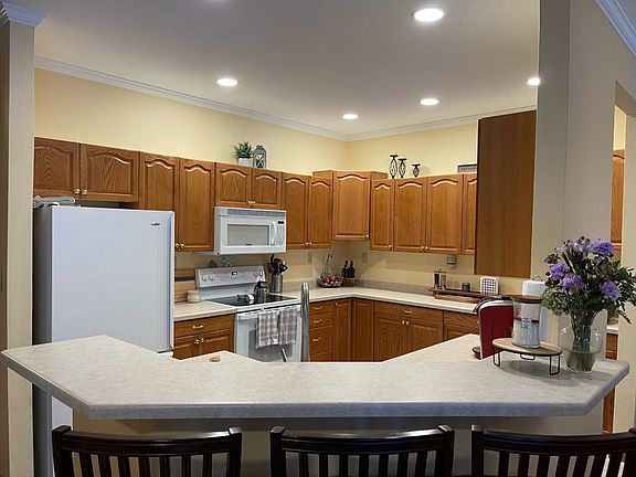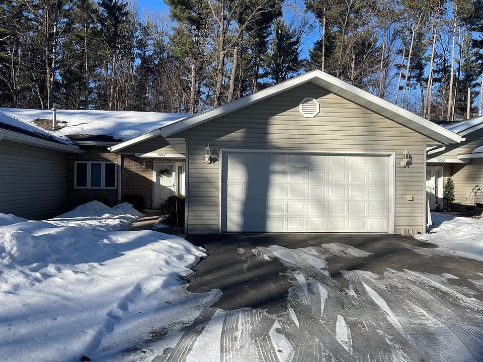 LOW-MAINTENANCE LIVING! This condo right off of a Weston main street .You are within walking distance to many great shops and restaurants! Zero entry walkway to the front door leads to the open floor plan with ceilings nearly 9’ high making this whole condo feel grand! All the appliances are included. The laundry room, with utility sink, and ample storage space are part of this unit. The heated garage has an additional access door into the condo with a utility room off the garage that has space for a workbench and additional storage. A keypad on the outside of the garage has also been added for keyless entry. The main full bathroom is conveniently located across from the second bedroom. The second bedroom has newer carpet and lighting. The main living area has newer laminate plank flooring and a gas fireplace that is central to this living space. There is a large kitchen with a breakfast bar peninsula and loads of cabinet space. Step out the rear patio door to a concrete patio.