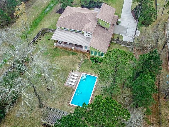 Outstanding Contemporary Home surrounded by mature landscape & long driveway to parking. One step in & you will know its a must have Home! Soaring ceilings, layered stone fireplace, wood floors, lots of windows, ceiling fans, formal dining room, & an amazing loft area for all to enjoy. Granite kitchen counters, breakfast bar, SS appliances, glass tiled backsplash, & plenty of cabinets. Center island with butcher block counter. The breakfast nook is bright & cheery. Master retreat offers backyard views & barn door to private spa-like en suite. Upscale baths with vessel sinks, non-laminate counters, & designer fixtures. Private Den with plenty of built-in shelves for books & collections. The backyard is an entertainers dream featuring an extended covered patio, dining area, sparkling pool, & exterior custom grill. This incredible Home has it all with close access to HWY 99, Hardy Toll, HWY 45 and nearby The Woodlands Shopping and Dining area!