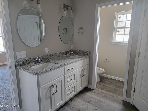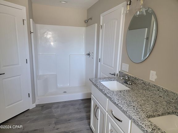 Spoil your family & make memories in this newly built beautiful 4 bdrm, 2 bath, brick and vinyl home close to Tyndall Parkway with available shopping and amenities; and only three miles to Tyndall Air Force Base. Large living area adjacent to open kitchen & dining area and covered patio; spacious master bedroom with a beautiful bathroom featuring his & hers sinks, closets, a separate garden tub & shower. Kitchen boasts granite counter tops, tile backsplash, the latest stainless steel appliances and lovely custom cabinetry.