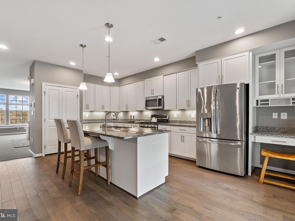 This is the one you have been waiting for – don’t wait! Spacious like-new 2-level corner unit in prime location, water views. Filled with additional tasteful upgrades hand-picked by architect-owners. Open concept main level is ideal for entertaining a crowd in this almost 2600 sq ft gem. Cook’s kitchen with high end appliances, huge island. Enjoy gathering by the fireplace in the winter, morning coffee on the balcony in the warmer months. The upper level features an oversized primary suite with two walk-in closets, two vanities in the primary bathroom, a laundry room, two additional light-filled bedrooms and another full bathroom. The garage has been finished with drywall, also has additional parking in driveway. Commuter’s dream – convenient to UMD, I-95 and 495, Greenbelt Metro, NASA Goddard. Enjoy multiple walking and biking paths, Lake Artemisia, Indian Creek Trail, Stream Valley Trail. Just minutes away from Beltway Plaza Mall offering shopping, dining, and theater, and next to announced/planned FBI headquarters, expected to bring 6500 employees!