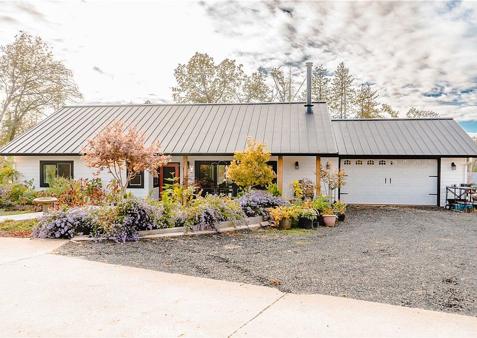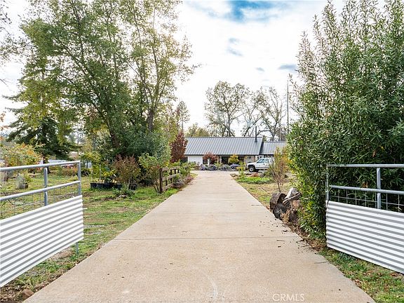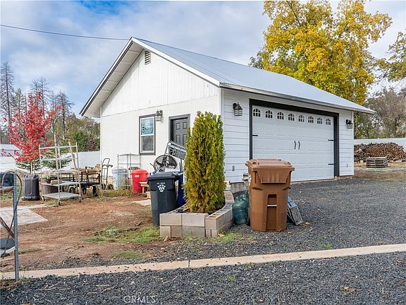 GREAT Location on end of Road with large 2.33 acre yard!! Wonderful Home with Metal Roof and Fencing. This home has 2 master bedrooms & baths with sliders extending to backyard. Half Bath runs in-between both bedrooms and includes laundry hookups. This home has an open layout with kitchen & dining room open to living room, with ceiling fans, wood stove, lots of open lighting including slider to backyard, large windows and so much more. There is woodbox connecting from garage to living room, for stocking up your wood stove without having to go outdoors! Large Pantry leading from kitchen to garage area. Solar to offset your energy bills, tons of room to have your animals, mature trees, lots of water and electrical throughout. 2 car garage attached with 4 french doors to convert to living space or whatever is needed. Another 2 car garage separate from home and TONS of room for gardening!!