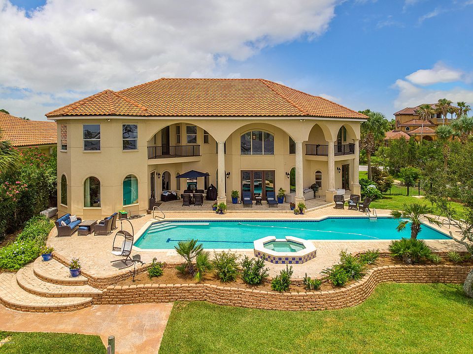 ***Currently under contract, seller accepting back up offers*** This GORGEOUS Mediterranean design 5bd, 4.5 ba(concrete poured walls) 3 car garage estate home was recently updated. 2 year old roof, new stucco, new flooring, new garage doors, and new pool equipment. Home was designed to showcase breathtaking water views from virtually every room. Interior features include decorative columns, arched windows, wrought iron handrail along the curved stairway and landing, stained pine dome ceiling, and crown molding throughout. Kitchen includes granite countertops, maple cabinetry, sub-zero fridge/freezer, Bosch 6 burner gas stove, GE microwave, double ovens, HUGE walk in pantry, dry bins, and 2 sink areas. Step outside to a 60 ft pool, 500 ft dock with both 60,000 and