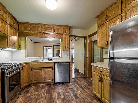 Larger than appears! Welcome home to a spacious Ranch in Shawnee! This home features 3 bedrooms + 4th non-conforming & 2 Full Bathrooms. Kitchen showcases stainless steel appliances & opens to dining room. Huge 2nd living space features a cozy fireplace & sliding barn door. Enjoy morning coffee in enclosed porch that looks out to fenced yard. Double paved driveway leads to attached garage. BONUS-Detached double car garage, perfect for workshop or additional storage! Unique stone planter ready for spring!