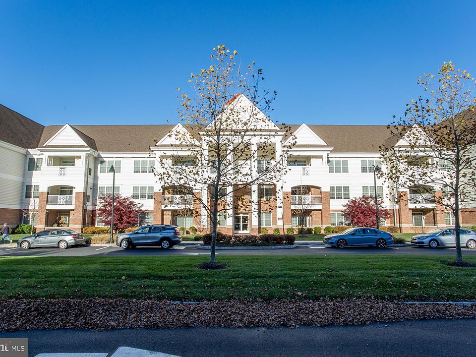You won't want to miss this immaculate 2 bedroom, 2 bath condo in one of the newest buildings in Meridian of Valley Square, a premier active 55+ community in Bucks County.  This second floor, light-filled home features gleaming hardwood floors throughout.  There is a fabulous kitchen with white cabinetry, tile backsplash, granite counters and island, and high-end stainless steel appliances including a gas cooktop. Unique to this floorplan is the separate formal dining room opposite the kitchen which can easily accommodate large family gatherings.  The stunning living room with a convenient wet bar exudes comfort and has access to the private balcony through sliders with remote shades.  A corner fireplace, currently housing a TV, could be transitioned back to the original electric fireplace.  The spacious master bedroom suite boasts two customized walk-in closets and a luxurious master bath with double sinks, extra large glass-enclosed shower with seat, a dressing table, and linen closet.  The well-appointed second bedroom and second full bath are on the opposite side of the condo where one also finds an additional room which could be either a den, an office, or perhaps an extra bedroom for guests.  Additional features throughout the home include plantation shutters, ceiling fans, multiple custom closets, and a laundry room with stacked washer/dryer and utility sink.  This condo has easy access to its own garage and storage unit on the first floor.  The pet-friendly community offers many amenities including secure entrances, walking and jogging trails, large outdoor saltwater pool, and a clubhouse with billiard room, fitness center, library, and more. Walk to Wegman's Food Market and the shops and restaurants at Valley Square. Easy access to major commuting routes and a short drive to historic Doylestown Boro with all it has to offer.
