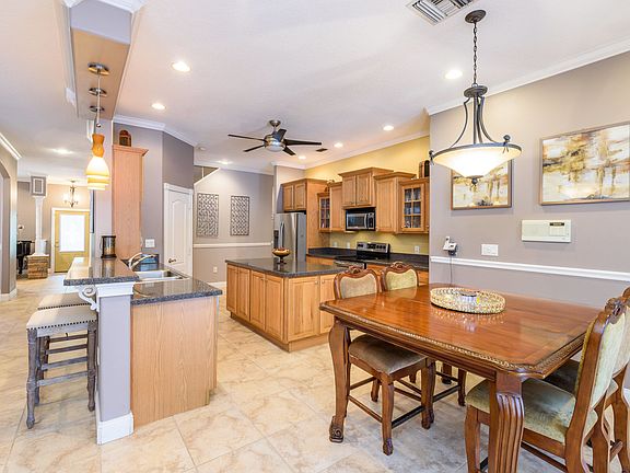 - Interior Features: Ceiling Fans(s), Eating Space In Kitchen, High Ceiling(s), Split Bedroom, Walk-In Closet(s), Crown Molding, Solid Wood Cabinets, Kitchen/Family Room Combo, Solid Surface Counters, Tray Ceiling(s)
