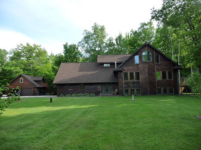 Country Comfort fills this 4BR/4BA home. Giant new deck overlooking the beautiful 5 acre lot. Scads of indoor parking or workshop spaces in both the attached garage and the detached garage. Majestic vaulted ceiling in the Super bonus room that could be a family room, a master bedroom or an office. The lower level is designed for guest spaces and activities. The newer septic is a plus and the other updates are wonderful. Priced to sell.