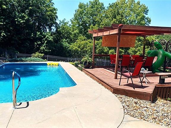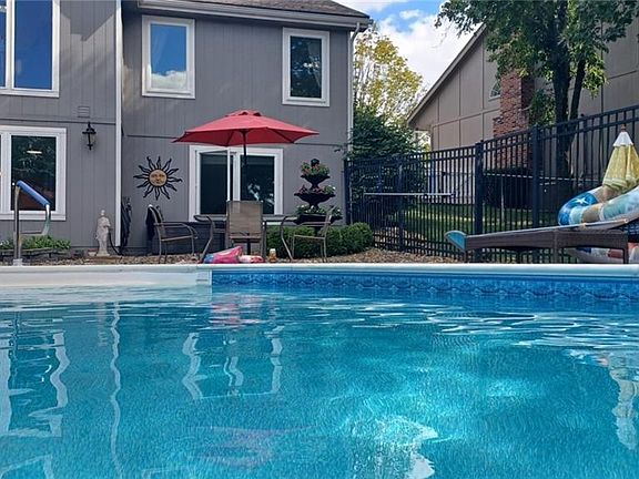 This is the true ranch home that you have been wanting to come to market! This home has 4 bedrooms and 3 full bathrooms, a finished walk-out basement, and an in-ground swimming pool. Just imagine the fun your family and friends will have in this heated pool oasis this summer! Backing to trees and green space just adds to the privacy. The sunsets are spectacular from this elevation. Inside is a large open kitchen with expansive, quartz counter tops, a pantry, induction cook top and built in oven with gray painted cabinets. There is an easy view of the pool with floor to ceiling windows at the breakfast nook and from the deck at the formal dining room featuring a beautiful, bubbled glass chandelier. The various vaulted ceilings maintain the modern design flare of the home. The front bedroom features a chandelier, built in desk and storage cubes. Next to the updated hall bathroom is the second bedroom with ceiling fan and stunning headboard design feature. The owner's suit faces the back and overlooks the pool and greenspace. The ensuite bathroom has both shower and whirlpool tub, dual vanity, toilet room and attached walk-in closet. The finished basement is an entertainer's dream space. Large enough for the pool table, and foosball too! Belly-up to the bar and enjoy the games. Nothing to do here but move right in and enjoy!