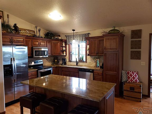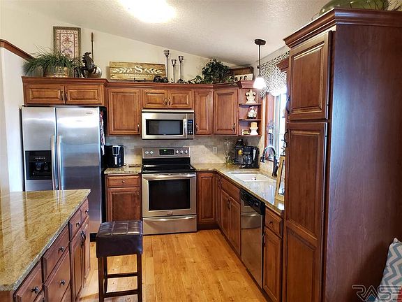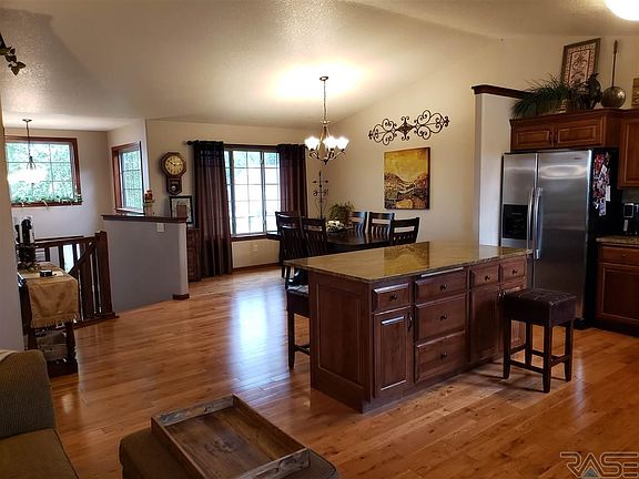 One owner 4 bedroom, 2 full bath, large 3-car insulated garage on a beautiful green way. Backyard neighbors are just a little further away. Solid surface kitchen counter tops. Upgraded kitchen cabinets. The Living room and family room below have windows on three sides that over looks the awesome green way. East backyard means a wonderful west driveway for the best snow melt in South Dakota! The garage is insulated, sheet rocked and painted. Great west side location.