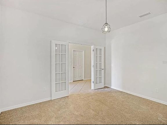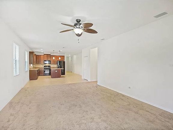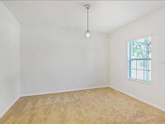 This lovely 2011-sqft, 4-bedroom, 2 full baths, PLUS den is mere minutes from award-winning amenities and public transportation in FishHawk Ranch's popular village of Starling. Step into the home and notice the cozy den with French doors which can easily be transformed into a 5th bedroom or a private office space. Immaculate ceramic floor tile laid on the diagonal flows from the extended foyer through to the kitchen, nook, and wet areas. Plush carpeting is soft underfoot in the den, bedrooms and living area. The open floorplan is ideally situated for entertaining and family gatherings. The warm kitchen overlooks the breakfast nook and sizable family room while boasting 42" wood cabinetry, granite counters with under-mount stainless steel sink, Preparation Island with breakfast bar, and a sleek black appliance suite that includes a refrigerator, gas range, microwave/hood, and dishwasher. Sliding glass doors of the breakfast nook brings the outdoors in, allowing for ample natural light.