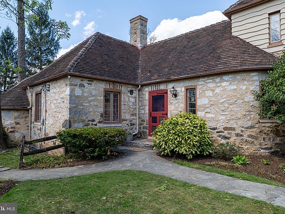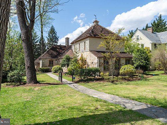 Nestled in the prime Historic Homeland neighborhood, just one block from The Lakes, this French style architecturally significant home exudes timeless charm. As you enter the richly paneled foyer, you'll be instantly captivated by its Olde World elegance. To your left, the Great Room awaits, boasting soaring exposed beamed ceilings, an abundance of natural light, and a cozy wood-burning fireplace complemented by custom built-ins. Off the Great Room you will find a private sanctuary perfect for quite reading or private conversations and featuring an exposed gas fireplace.  From the foyer, you have access to the main floor powder room and a step down into the kitchen offering plenty of functionality. The kitchen is ready for your personal touch renovation, but has updated appliances including a commercial grade ZLINE gourmet range/stove. Renovation designs are uploaded and can be found along with the disclosures. Off the kitchen find a private den for additional space and function. Just beyond the kitchen, a spacious patio invites you to enjoy grilling and alfresco dining. From the kitchen, you enter the large dining room, which strikes a perfect balance of elegance and warmth, making it the ideal setting for hosting family and friends. A winding hallway leads to the main floor bedroom, unsual both for the time and the Homeland neighborhood. Freshly painted with a generous walk-in closet, hardwood floors, and a renovated en-suite bath.   Upstairs, you'll find two charming bedrooms sharing a Jack-and-Jill bathroom. A non-confirming 4th bedroom, which the owners converted from a large walk-in attic offers a great space as a bedroom, office, or flex space. The mature landscaping and private rear yard provide serene spots for relaxation. Lastly, this home has a newer bonus oversized two-car garage, complete with a parking pad; a fanstatic addition for this Homeland delight.  For history enthusiasts, this residence was designed by renowned architect E.H. Glidden, Jr. in 1928 for Charles Taylor. The home is a beautiful example of French Normandy revival design. E.H. Glidden, Jr.'s legacy includes notable projects such as the Lexington Market, Stella Maris Hospice, and several schools, including Milford Mill High School in Baltimore County. Touring this exceptional home is truly a delight.
