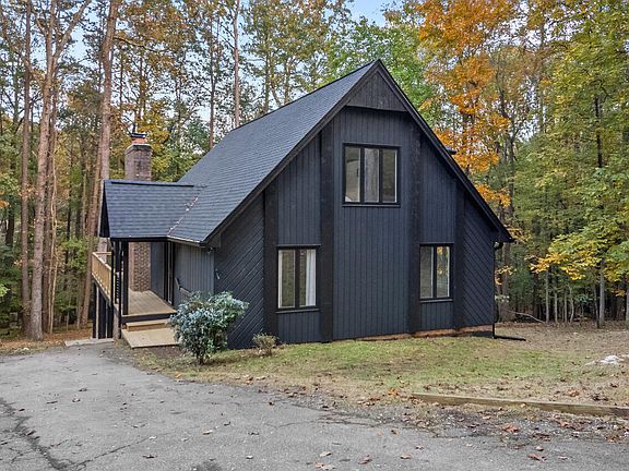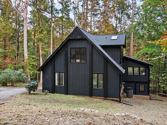 Have you ever wanted to live in a peaceful, wooded neighborhood free from HOA restrictions and city taxes? Have you dreamed of being within walking distance of Raleigh's best schools? Have you wished for an updated home unlike anything in its class? Well look no further. This incredibly cool A-frame home on ¾ acre invites you to experience just that—serenity and charm, all within walking distance of Raleigh's finest schools. As you enter, you'll be greeted by impressive two-story windows that frame the treetops, allowing the beauty of nature to flow inside. Double sliding glass doors lead you onto an expansive, recently refinished back deck, where you can enjoy the private wooded view while your senses delight in birdsong and whispering breezes. The cozy wood-burning fireplace creates an inviting atmosphere, perfect for curling up with a good book. A newly renovated sunroom beckons for moments of relaxation and reflection, providing a serene spot to unwind. The open-concept kitchen, living, and dining spaces are ideal for entertaining, while two spacious bedrooms and a full bathroom on the main level offer flexibility for your lifestyle needs. Upstairs, you'll find a versatile landing space that could serve as a home office, cozy reading nook, or yoga retreat. Step into the primary suite which features a custom built walk-in closet and designer bathroom with luxury fixtures. For those who work from home, a thoughtfully designed detached office can be found on the lower level accompanied by a well-equipped workshop with ample storage and custom-built workbenches, giving you an additional 461 sq ft. A large storage room is conveniently located around the side of the home. Every detail of this home has been carefully considered, from the beautiful cedar siding to the new flooring throughout the main level; from the brand new roof to the freshly painted interiors and exteriors. Rustic wood ceilings, custom trim features, and charming built-ins add warmth and character to each room, making this home truly one-of-a-kind. Don't miss the chance to make this dreamy woodland retreat your own—a perfect blend of tranquility, whimsy, and charm awaits you!