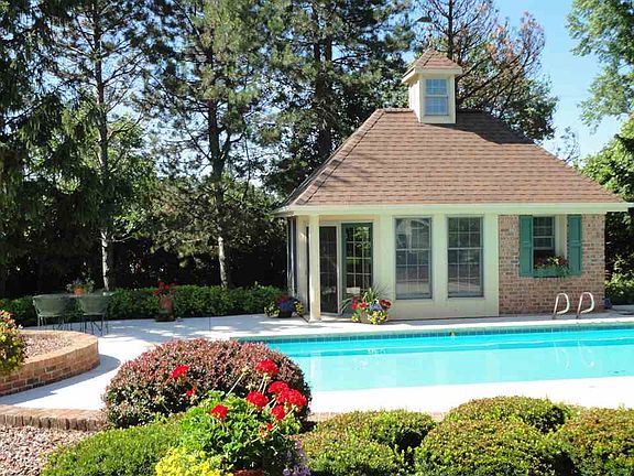 The property was selected and photographed for a 2018 International Catalog. Private family sanctuary is an all brick traditional elegant custom built open plan residence. Solid limestone quoin corners. Old world timeless style and charm. Lots of glass to visually enjoy the outside. 2-story front porch and foyer. 10' ceilings on 1st floor. 8'X18' doors on 4-car heated garage with hot and cold water and floor drains. Oversized driveway. 30-year roof in 2014. Replaced 2-HVAC systems-2013. Serene and private backyard oasis!!! View your pool house then step down in yard to in-ground heated concrete POOLwith auto cover and treated cool deck surrounded by brick wall and unable to be seen from street, 3-covered porches, Irrigation system. Hard wired for security but leased system. Custom poplar woodwork, 5-panel doors and crown molding, Stunning large kitchen with unique custom built cabinetry with granite counter tops, breakfast bar, butcher block and formal dining room is the heartbeat of the home plus a stylish formal living room. Home is perfect for large group functions. Larger sun room serves as a 2nd family room, overlooking pool and patio. Your 25'x20' family room with fireplace and expansive windows overlooking beautiful backyard. Very large bedrooms with bathrooms and over-sized walk-in closets plus den (or 5th BR) with full bath. Master suite has private covered porch - 6'x12'x11' MBR closet. 2- staircases. No Basement.