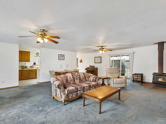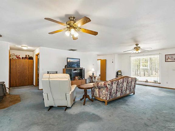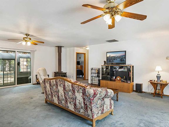 Situated on the border of BLM in the Deschutes National Forest, this is the perfect spot for a private oasis just minutes from town. Well cared for single level home has had just one owner & is ready for your personal touch. Huge living room space for comfortable entertaining w/adjoining kitchen & sunroom. Wood burning fireplace to keep you cozy & warm during the winter, mature pines outside provide summer shade for efficient cooling. Bedrooms are spacious w/plenty of natural light. Sunroom built off the north side of the home is not included in sf & adds year round outdoor living & entertaining space. Driveway is paved w/two entrances, property is fenced & cross fenced! Double car garage is insulated w/work space. Two additional de-comissioned homes on the property that can be used as storage or bunk houses. Great garden areas on the property & the ultimate privacy just outside of town!
