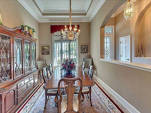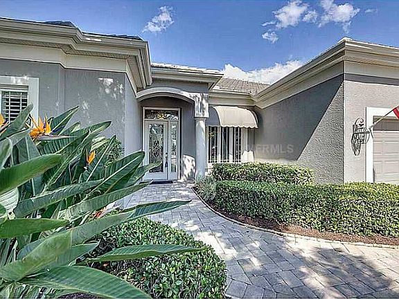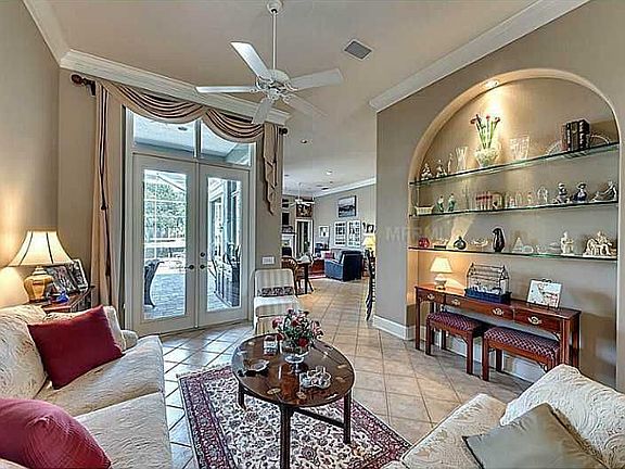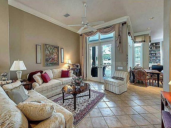 This totally updated, custom home has it all, with 4BR, 3.5BA, a 3 car garage, and the Eastern back exposure, with a fabulous lake and golf view! There are crown moldings throughout, solid core wood doors with elegant wood trim, quality built-ins, plantation shutters, a great use of pocket doors and lights in every custom closet. The foyer has a decorative tile pattern on the floor, with tile flooring everywhere, except the bedrooms, which have newer carpeting. The 4th bedroom/ den has wood flooring, a bay window, with a seat and storage, a built in desk with shelving, and a custom wood ladder to reach the upper bookshelves. Off the den, there is a full pool bath with a shower. The re-done Pebble Tech salt water, heated pool has a waterfall, and a beautiful paver brick surround. There is a built-in covered grill area, a spacious lanai area with storage, glass block in the privacy wall, lush plantings, landscape and that view! The remodeled kitchen, with granite counters, has 42" cabinetry, with crown trim, cabinet panels on appliances, pantries, pull-out drawers in cabinets, trash and recycle bins, a handy bar area with a sink, an ice maker and a cafe area. The nicely sized master bedroom suite, with an updated bath, has gorgeous marble, a Roman shower with a seat, raised panel wood cabinetry, a designer wall finish and two big closets, w/built-ins. Other: a huge air conditioned garage, with room for a workshop or 3rd car, extra storage and an epoxy floor finish; more! Quality furniture negotiable!