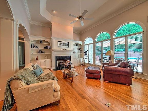 From the Seller: Executive home listed in Wake Forest NC with only county taxes!! 4459sq.ft, brick, hard to find large first floor master (with sitting area + his & hers walk-in closets); 4 bedrooms; flex room easily a 5th bedroom; 3 full bath and 2 half bath; very private 2.86 acres in the much sought after Millrace sub/div (the hidden jewel of Wake Forest); 20 x 40 in-ground pool with rim of fiber optic lighting and surrounded by a beautiful stamped concrete patio in backyard oasis; pool house with half bath, mini-fridge plus separate sink & outdoor hot water shower; 2nd separate patio area off the master bath perfect for a hot tub; partially covered large deck with direct access to master bedroom and kitchen both; open and airy floor plan with very large foyer, dining room, living room with fire place flanked by large built-in bookcases, and kitchen with breakfast bar + gathering area / sunroom + eat in area + built in desk and pantry; 42 inch maple cabinets create tons of storage space amid beautiful granite countertops; soaring ceilings throughout the home - up to 14 feet; upstairs includes very large bedroom, large bath, (perfect for a teen suite or in-law suite), flex room easily a 5th bedroom, small theatre room (or second flex space), workout area with 2 skylights, 9'x5' pool table, wetbar & 2nd fireplace, large walkup floored storage area; huge front porch; side entry 2 car garage; turnaround driveway; over 100' of private access to semi-private pond that spills over picturesque 100+ year old stone waterfall next to community gazebo; the Millrace sub/div consists of 50 truly executive custom homes on large private lots built around 4 interconnecting spring fed ponds for private fishing, kayaking, and observing nature. Many things convey with the home including all pool equipment, pool table, workout gym, air hockey table, ping pong table, basketball goal and more. Rounding things out are excellent Wake County schools, less then 5 minutes from shopping and restaurants, low HOA dues of only $285/yr and believe it or not.....so much more.