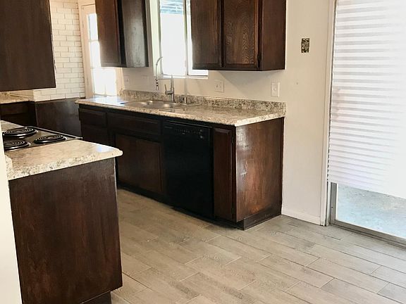 New wood plank tile flooring, new carpet, new paint, new lighting, new over-range microwave, and kitchen! Covered patio with detached 2 car garage. Wrought iron gate and block wall fencing. Virtual showings available.