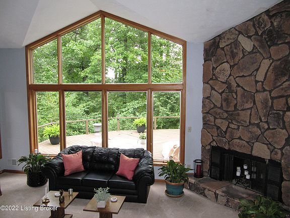 Great opportunity to purchase a home at the top of Kenwood Hill with an outstanding view of downtown Louisville! There are many windows in this one-story ranch with an open floor plan that gets lots of daylight. There is a large deck and patio outside.The large primary bath has an oversized sunken whirlpool tub and custom built vanity sink. The Great Room has two wood burning, back to back, fireplaces with gas starters. There are two additional finished rooms in the basement. One room has a bar for another place to entertain guests. The other room has a large closet and could have many uses.The oversized, side entry, two car garage is accessed from downstairs. This home needs some minor repairs and the cost of these are reflected in the price. Therefore, it is being ''Sold As Is.''