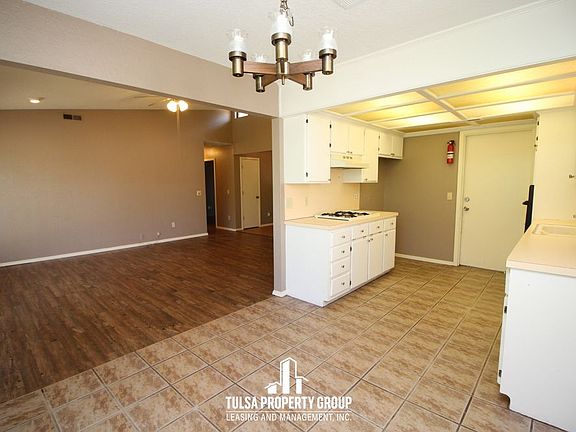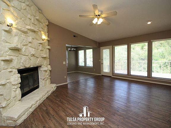 Roomy three bedroom, two bathroom in Broken Arrow Schools! Windows provide lots of natural light. Linoleum and tile throughout. Living room with fireplace leads out to a large back deck with a wooded view. Kitchen comes with oven, stove top, and dishwasher. Master suite has vaulted ceilings, skylights, and french doors that lead out to the deck. Two car garage.