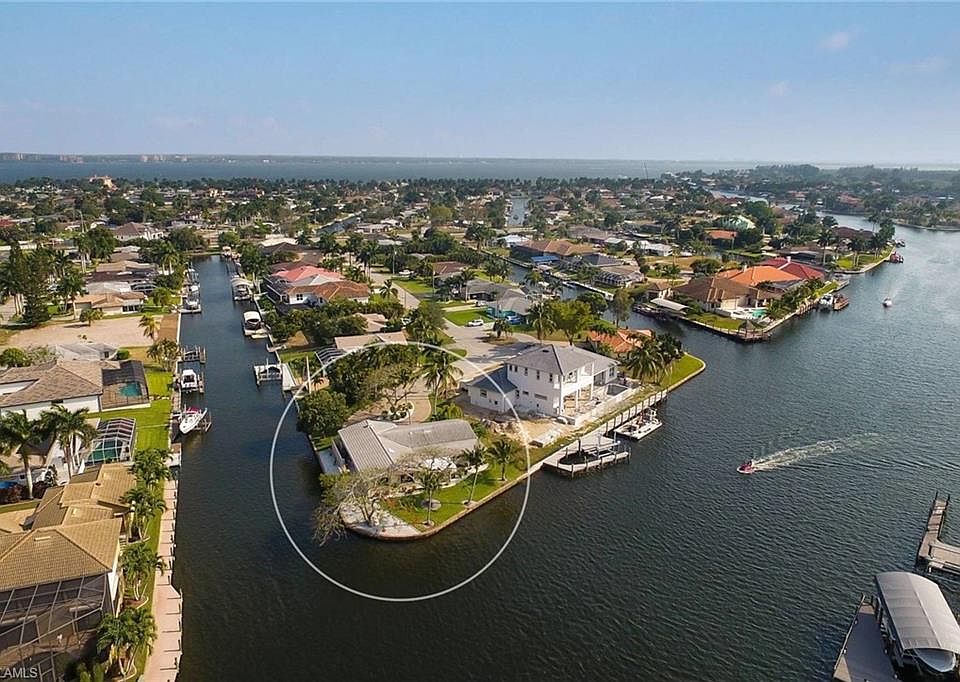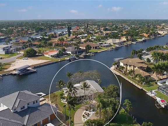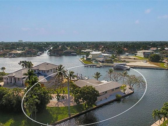 LOCATION!!! Quiet SAIL acc. CORNER CUL-DE-SAC site rests in south Cape Coral. Offering 211 linear ft. of seawall wrapping the highly desired 200 ft wide BIMINI CANAL & Seminole Canal. Want no obstructed intersecting canal views? Place all docks alongside side canal. A true boater's dream; NO LOCKS OR BRIDGES, 10 min. to Caloosahatchee River & quick Gulf access via Sanibel Isle bridge. While at home enjoy boat traffic, kayakers, boarders, dolphins, manatees & share our Annual Christmas Boat Parade. This well loved mid-century home was once a 4 bedroom home. It now reveals porcelain tile thru-out, 2 master suites, 2 en-suite baths, 2 lg walk-in closest, extra lg windows & sliders that bring big water views inside. Renovation includes newer kitchen w/ walk-in custom pantry, windows, accordion hurricane shutters, & 20k landscape redo w/ exceptional lighting pkg., paver cir. driveway, & 3 mature Royal Poincianas' that shout a blooming SW Fl tropical landscape at its best. 2 car garage offers generous 513 sq. ft., a motorized screen, work area, & large covered screen lanai out back. Thinking of building new? New homes surround. Not ready? Secure & enjoy now or lease out & build later!