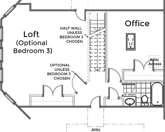This two-story town home holds the master suite on the main level. The bedroom has a tray ceiling, walk in closet, and a private master bathroom. The bathroom can be built with either a large walk in shower and a water closet, or a separate shower and tub. The galley style kitchen has a bar top that leads into the dining area and the living area. The living room has a gas log fireplace, which has the option to become a double-sided fireplace when adding the optional sunroom. The second bedroom and full bath are also located on the main level. Upstairs you will find a large loft with tons of natural light (optional 3rd bedroom), and office as well as the third full bathroom. This home feels quite spacious with over 2000 square feet, and has a two-car garage.