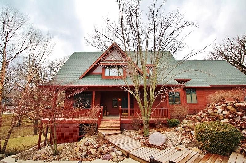 Magnificent Craftsman Home with Views! If your dream home would be loaded with Craftsman architecture, woodwork and details, you've found IT in this stunning property! Located just offshore on the lake's east side, it's positioned to enjoy lake views from the spacious deck and living areas, plus it's near the marina and golf course. From the moment you step inside, you'll want to explore every room, from the custom oak nooks and built-ins to the multiple levels of living space. The great room stone fireplace is a show stopper - unless you prefer the rec room bar that seats eight, or the custom kitchen, or the gorgeous open staircase. The list goes on and on!Even with this level of craftsmanship and details, this home has lots of living space, including four BRs, five baths, main level office/BR, and unfinished space over the garage. Bonus! It's energy efficient thanks to geothermal heating/cooling. This incredible home is an architectural gem!