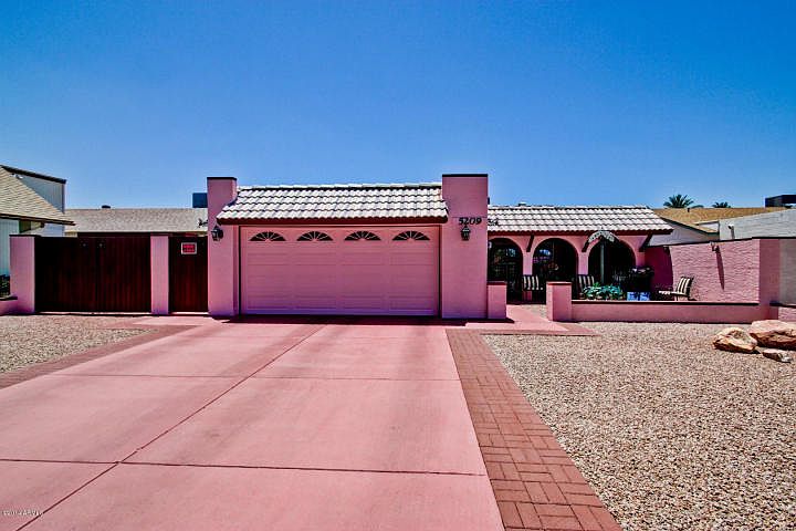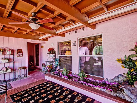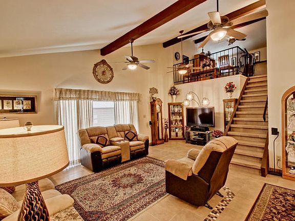 Welcome to Paseo Place! This beautiful, meticulously maintained home offers vaulted ceilings with exposed beams, tile and carpet in all the right places, and a nice loft area up a flight of stairs. SO many features that photos cannot capture fill this home! Brick fireplace for those cozy nights, and ceiling fans throughout. Upgraded kitchen, a plethora of cabinets, granite countertops and backsplash, & eat in dining area. Amazing backyard is complete with sparkling blue pool with waterfall, ramada, covered patio, and bar complete with custom fitted removable poker card table top. Large garage with epoxy floor and cabinets. Every inch of this home, both inside and outside screams pride of ownership and attention to detail. If PINK is not your color, then paint it, and enjoy. NO HOA!