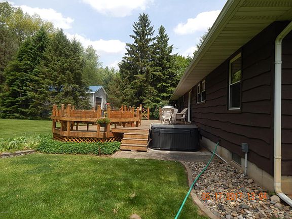 Portage Lake access and sitting on 3.71 acres with a Beautiful 3 bedroom 2 bath ranch home with Fireplace in Living room and free standing gas log heater in finished family room. Kitchen has been completely updated with solid surface counter tops and sink. Windows have all been replaced.Very Nice Laundry room. Security system owned by seller. One owner home. Updated heating source. C/A also new in 2012. Bathrooms have been updated. 2 car attached garage and a detached 24x24 with electric. Hot tub 3 years old on tiered back deck. Access to Portage Lake with a private dock & boat lift with cover in the Harbor Way Park.