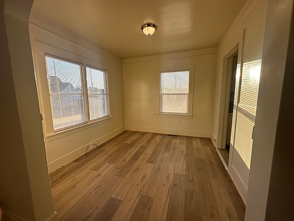One bedroom and one bathroom house with storage garage. Large living room, separate kitchen with plenty of cabinet space, separate dining room, laundry room area with hook-ups, large bedroom with oversize closet and bathroom with stall shower. Extra loft room above garage, suitable for office, media or extra bedroom. New paint, flooring, fixtures and window coverings. Small fully fenced private yard and storage garage. Located close to parks, Henderson Center, downtown, shopping and restaurants. Yard care paid. No smoking and no pets. One year lease. Landlord pays yard care. Tenant pays all utilities. No smoking and no pets. One year lease.