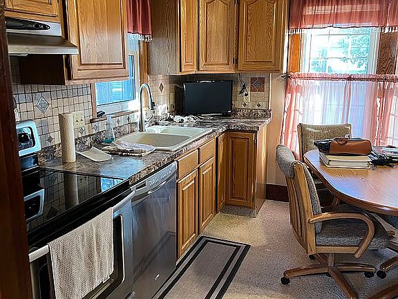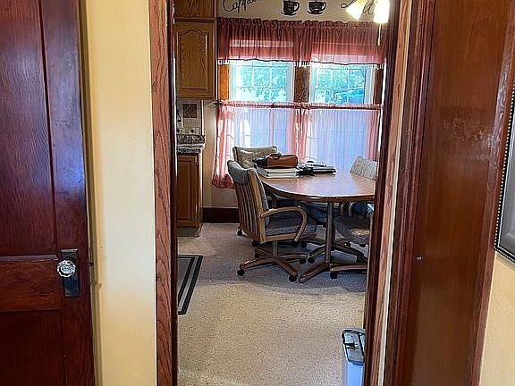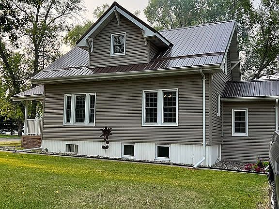 2 story home with 2 detached garages and a shed which all sits on 5 lots with mature trees. 1 bedroom main floor with full bath. 2 bedrooms upstairs with a full bath. Has main floor laundry. You can walk out through your patio door to a 15x16 wood deck. It comes fully furnished. Within the last 12 years the furnace, water heater, windows, and roof have been replace. It has vinyl siding. The home is maintenance free. Lots of room to add an attached garage if so desired.
